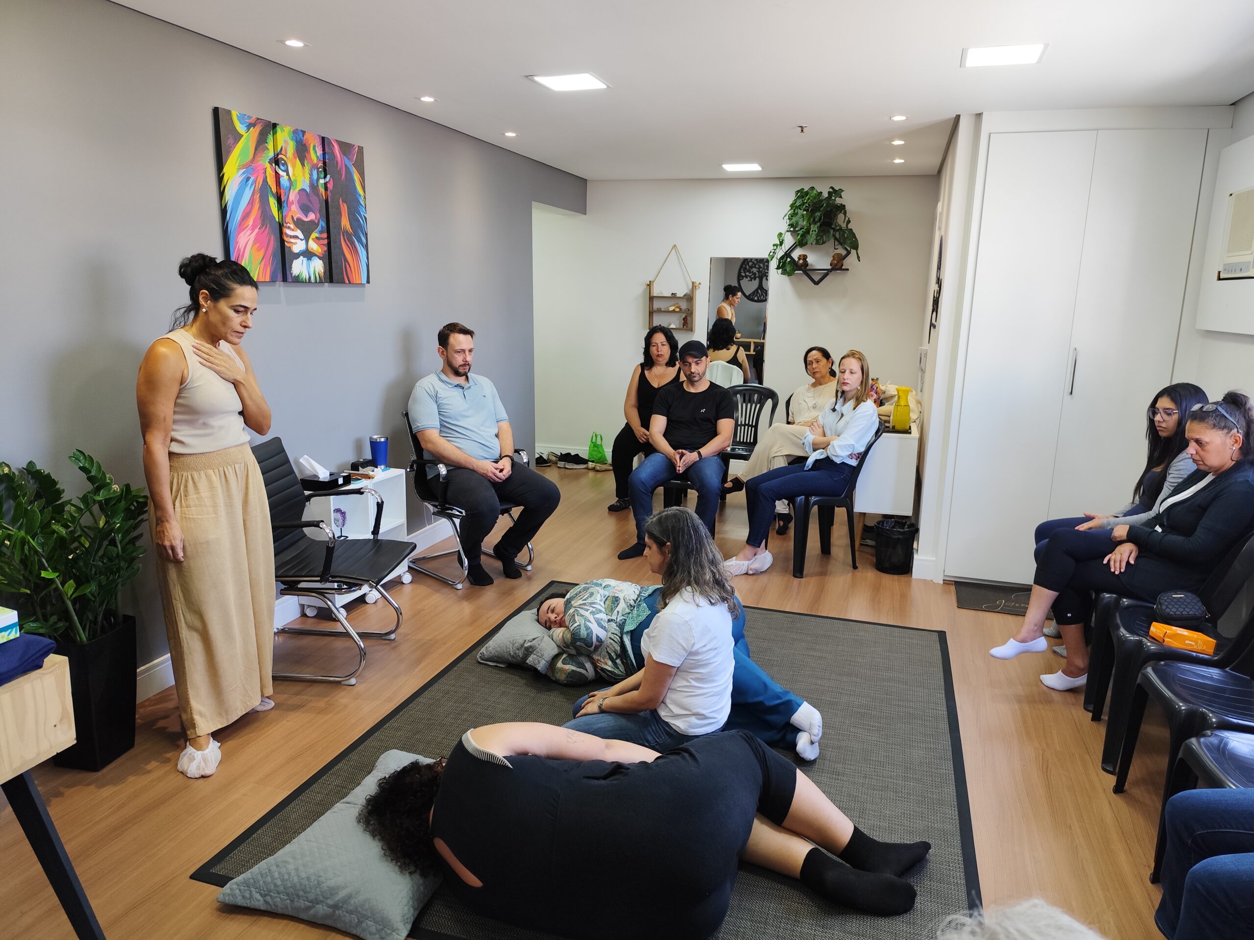 O workshop é uma experiência de reconhecimento. Você vai entender como os padrões funcionam e identificar o que te bloqueia. Para um trabalho profundo, existe a constelação individual 1×1 — apresento ao final com condição especial.